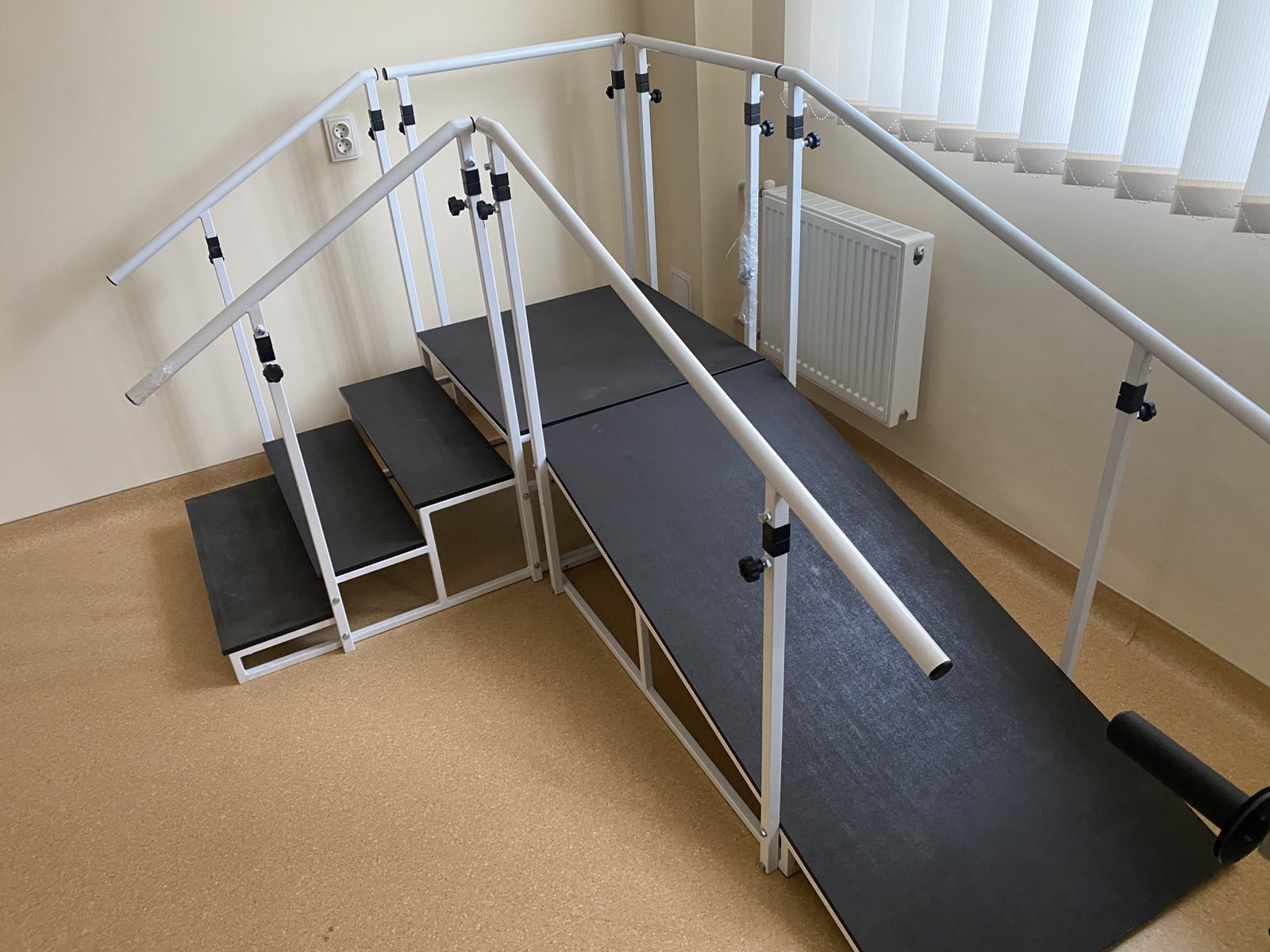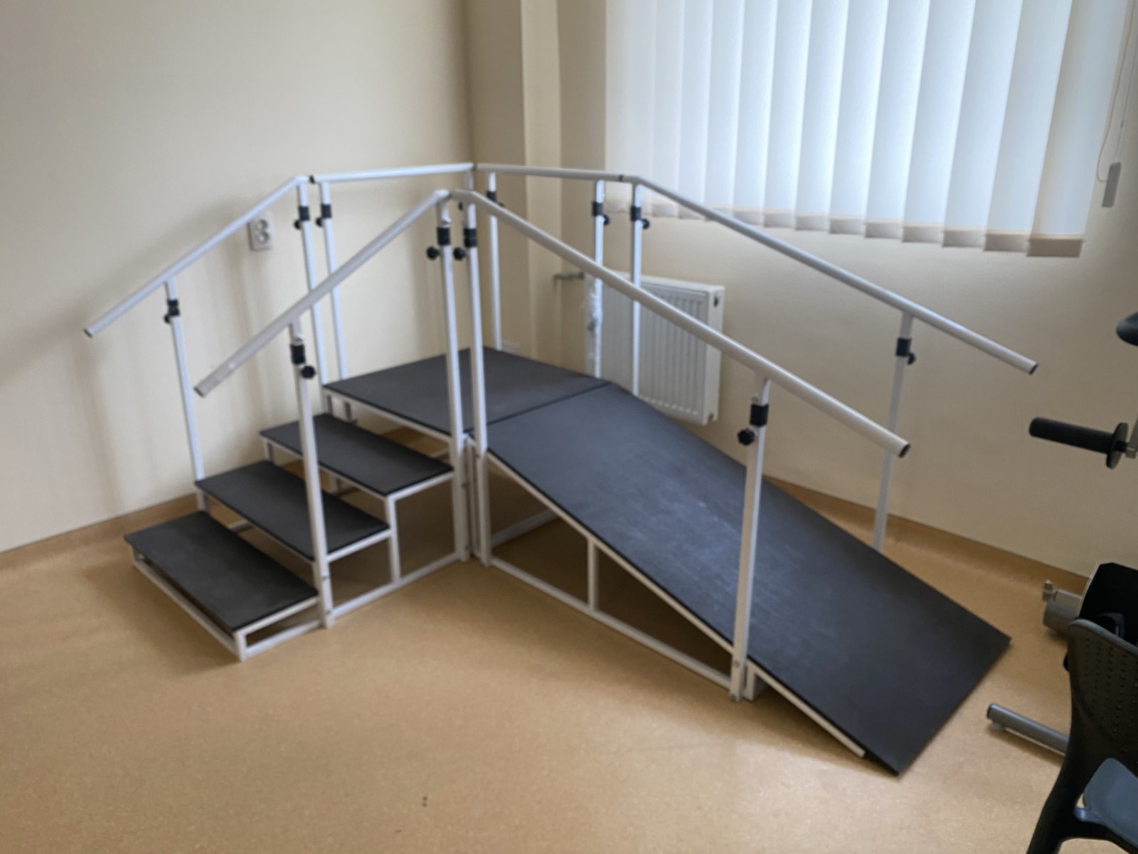 - Безпечне середовище для реабілітації — зручні поручні та похила площина підтримують пацієнта на шляху до незалежного руху.